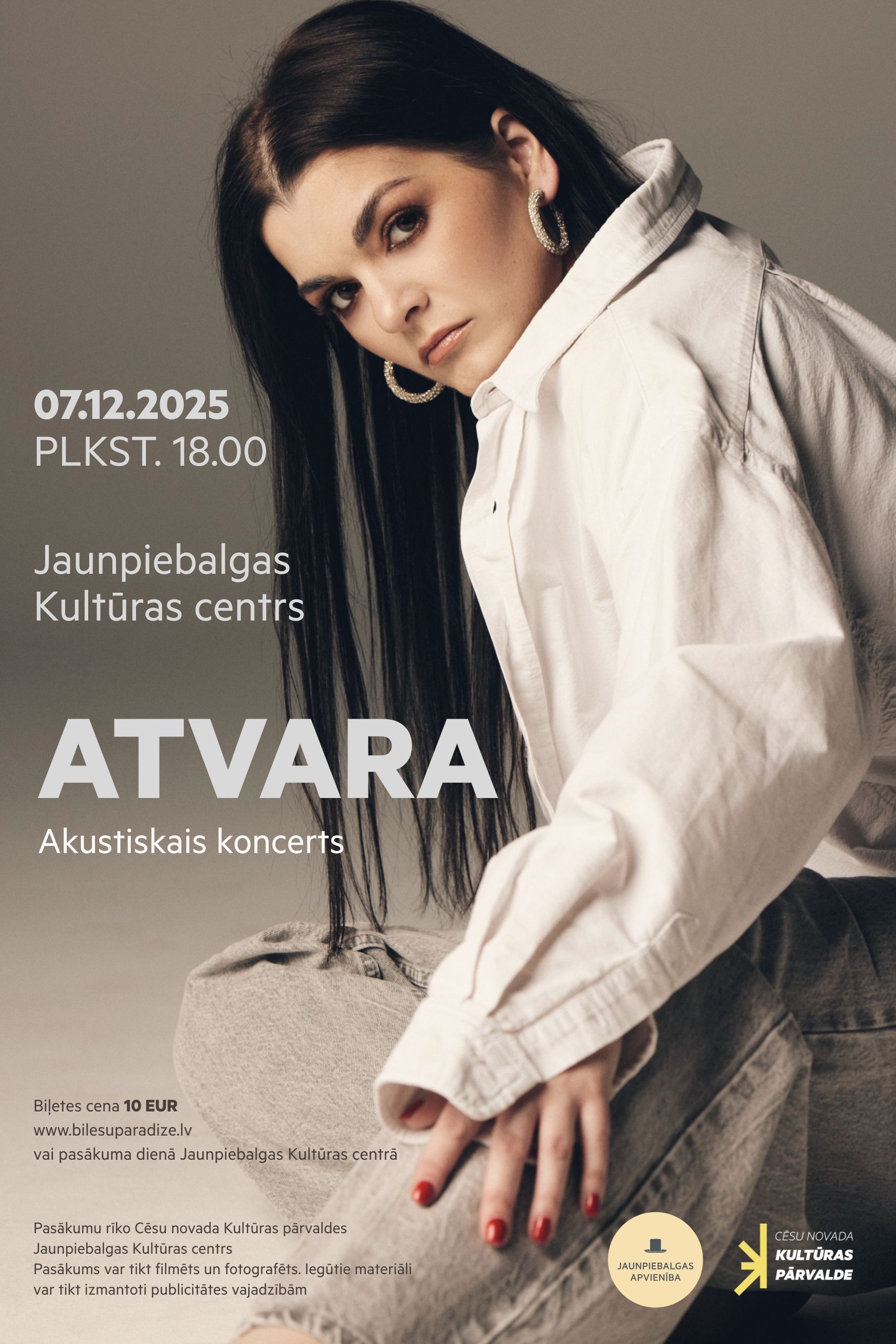 Svētdien, 7. decembrī, plkst. 18.00 Jaunpiebalgas Kultūras centrā notiks dziedātājas Atvaras akustiskais koncerts.