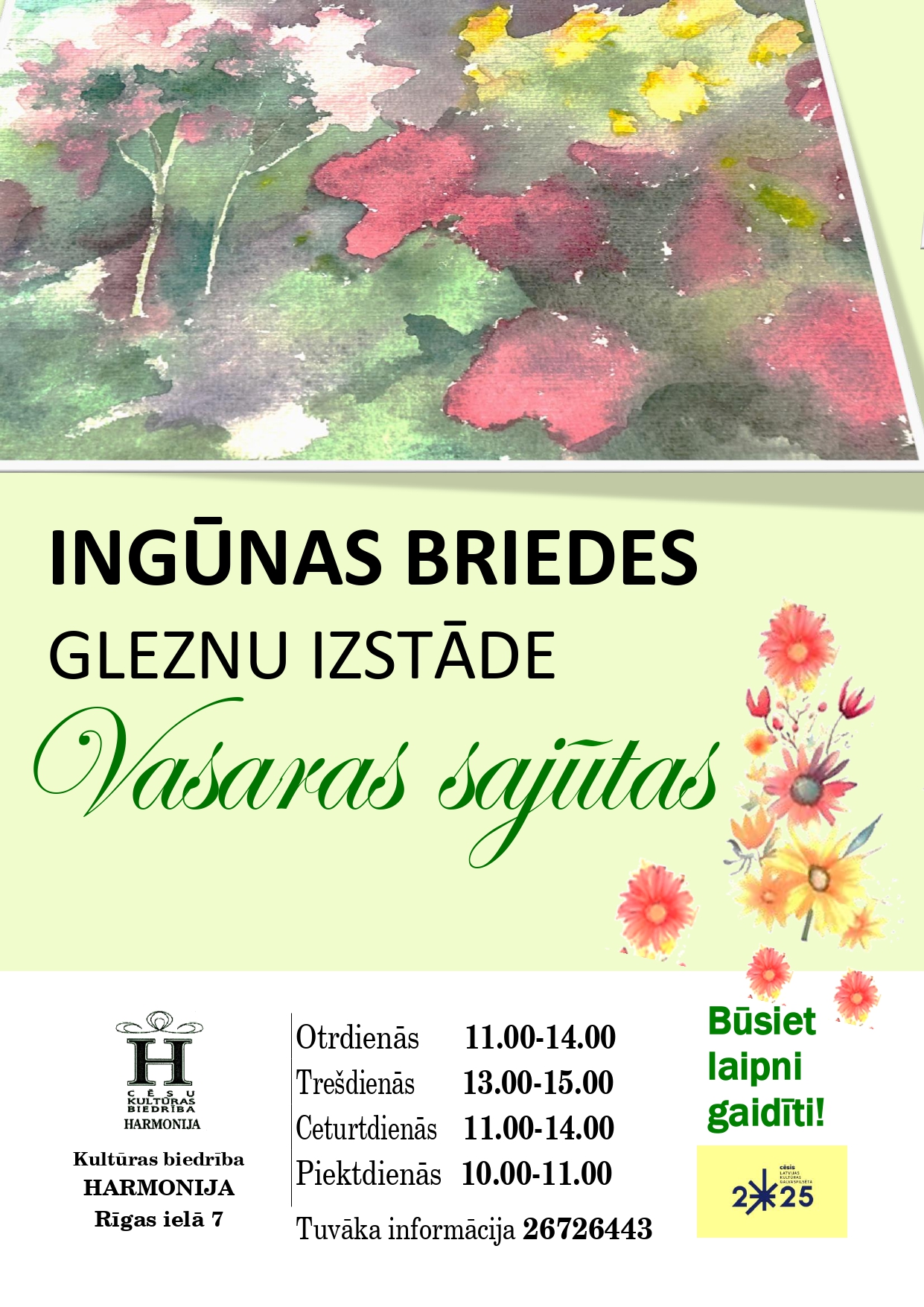 Līdz 31. decembrim kultūras biedrībā “Harmonija” apskatāma Ingūnas Briedes gleznu izstāde.