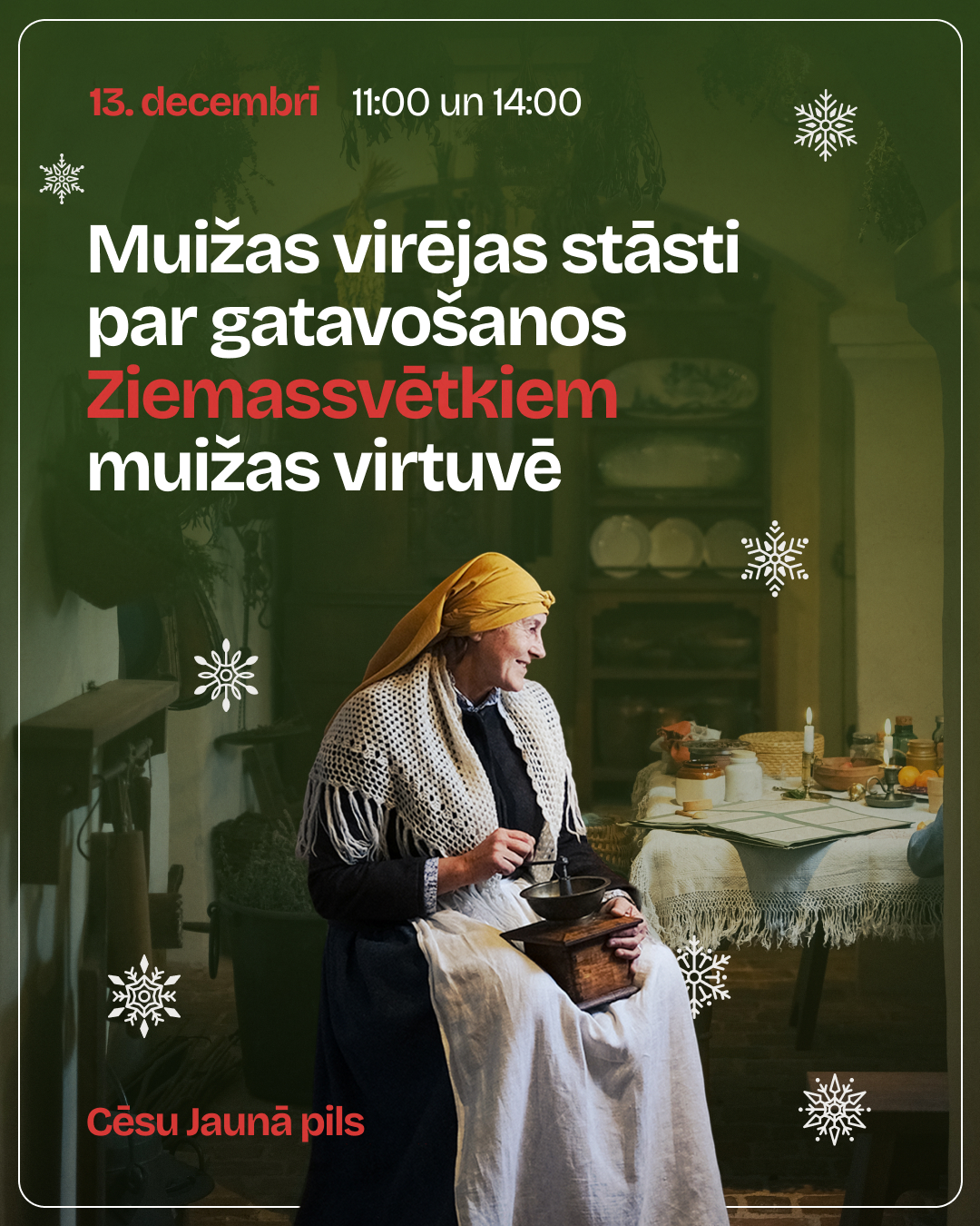 Sestdien, 13. decembrī, plkst. 11.00 un plkst. 14.00 Cēsu Muzeja Jaunā pils aicina satikties ar muižas virēju, kura stāstīs par gatavošanos Ziemassvētkiem muižas virtuvē.