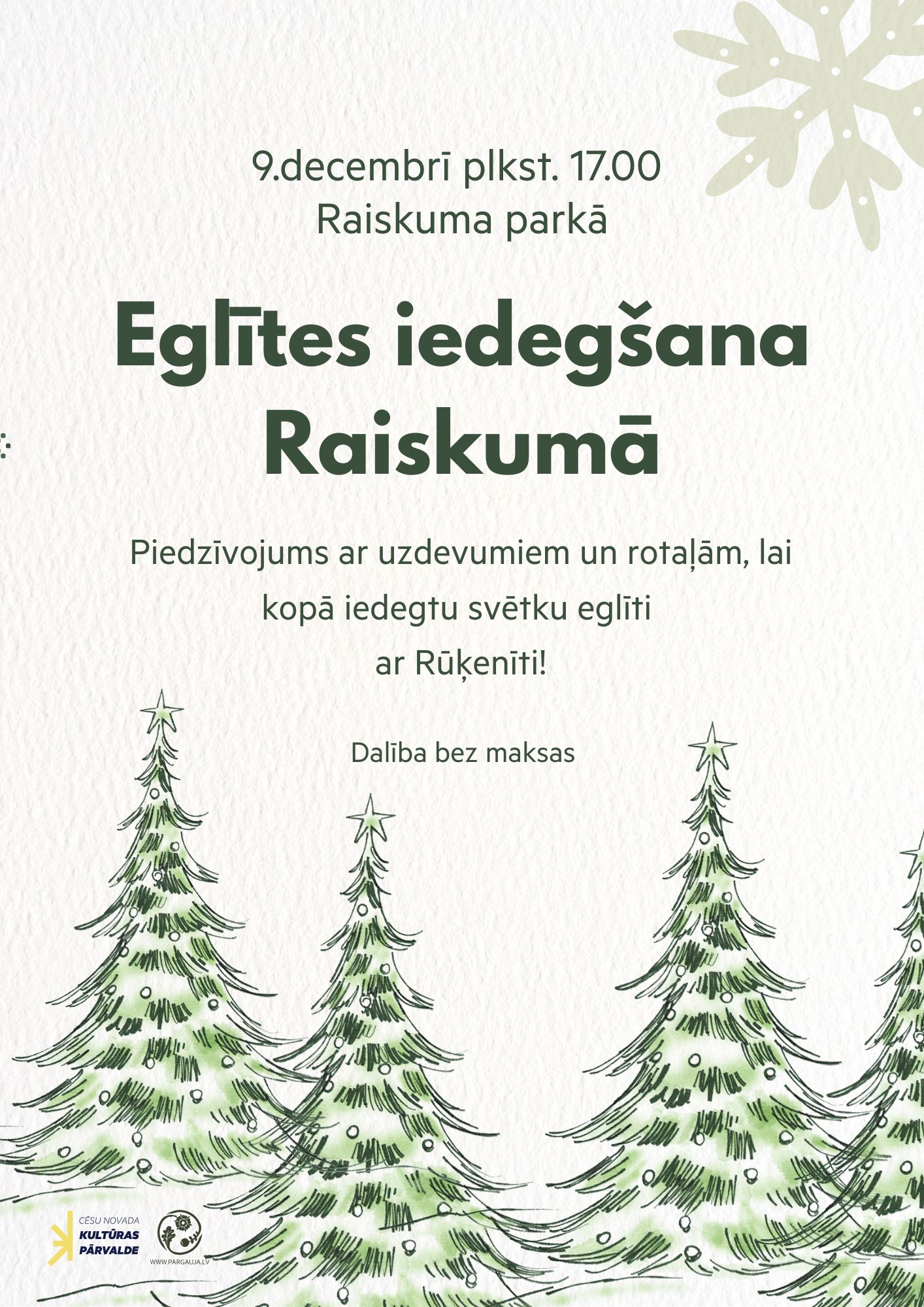 Aicinām uz Ziemassvētku eglītes iedegšanas pasākumu Raiskuma parkā 9. decembrī plkst. 17.00.