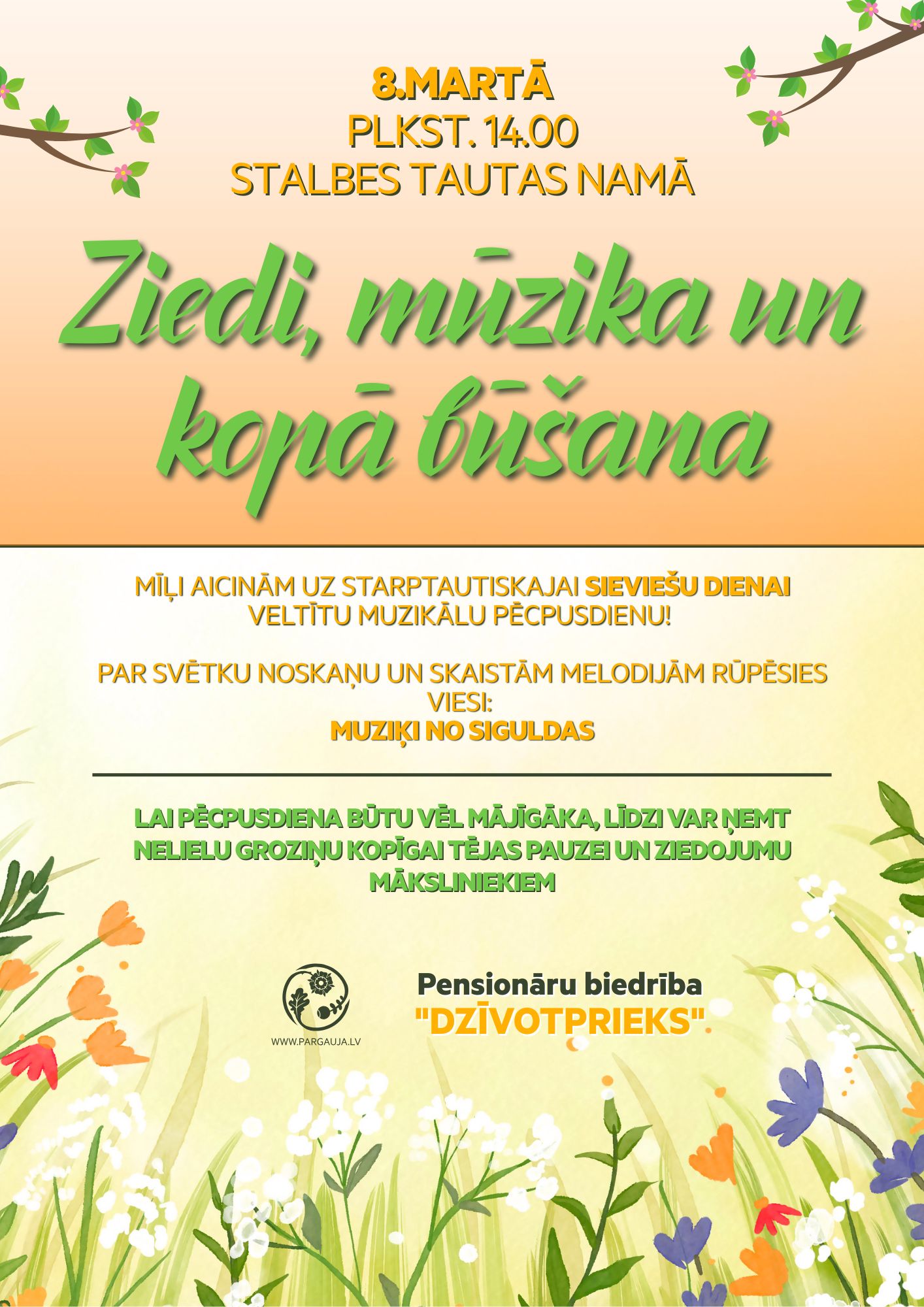 Svētdien, 8. martā, plkst. 14.00 aicinām uz sirsnīgām un muzikālām Starptautiskās sieviešu dienas svinībām Stalbes Tautas namā!
