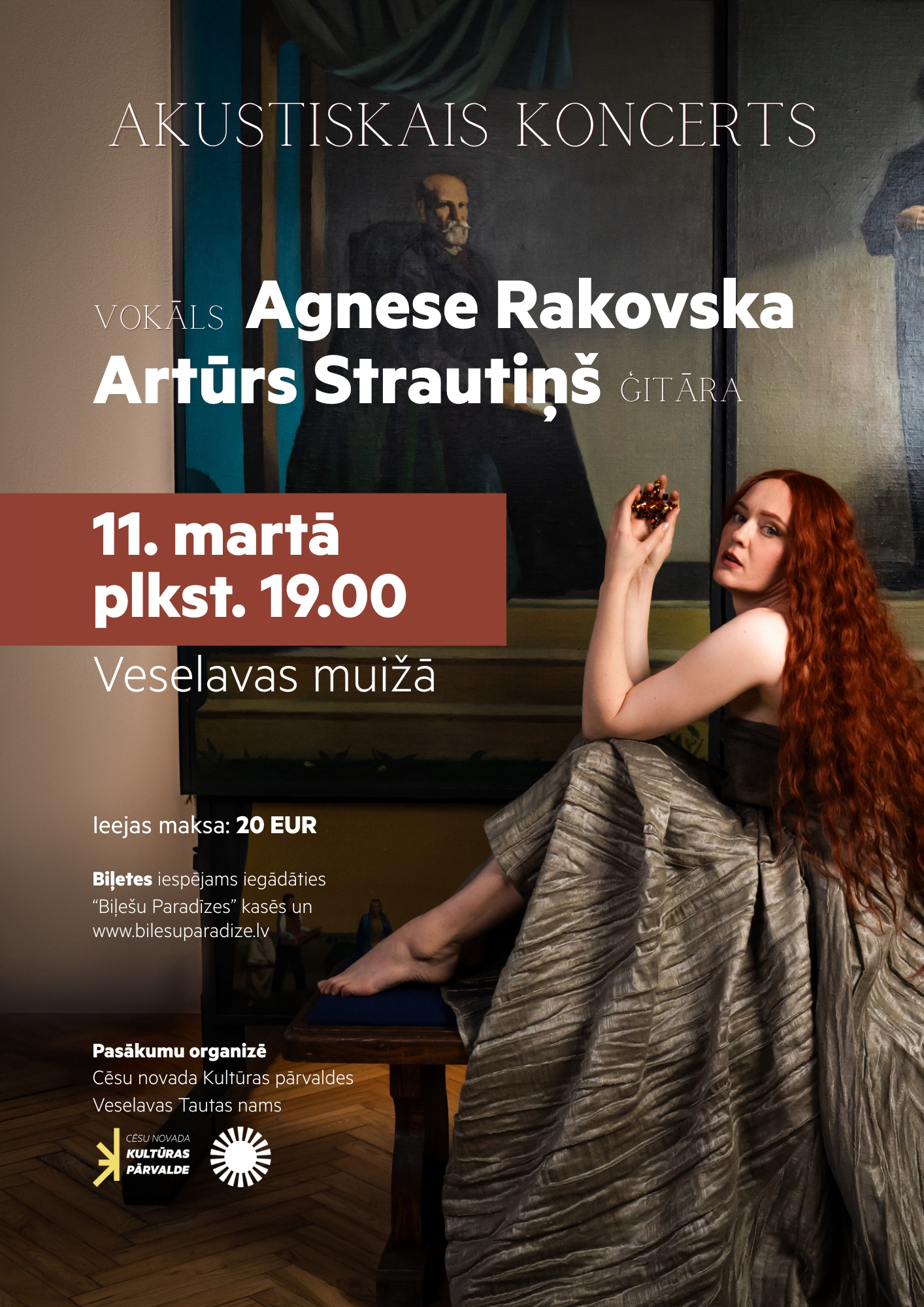 Trešdien, 11. martā, plkst. 19.00 Veselavas muižā izskanēs Agneses Rakovskas (vokāls) un Artūra Strautiņa (ģitāra) akustiskais koncerts.