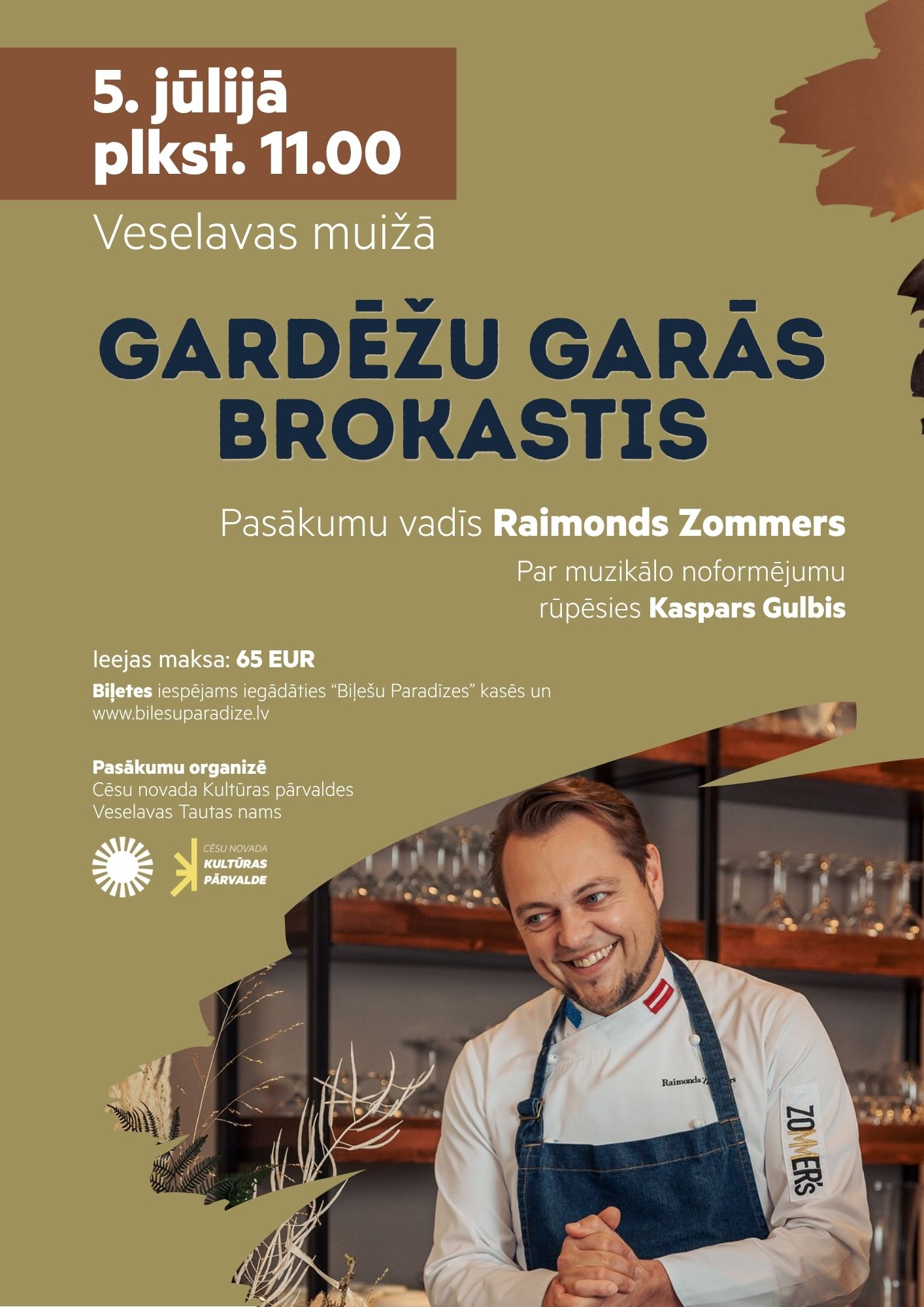 Veselavas muižā 5. jūlijā plkst. 11.00 notiks pasākums “Gardēžu garās brokastis”, ko vadīs šefpavārs Raimonds Zommers. Pasākumā par muzikālo noformējumu rūpēsies Kaspars Gulbis, par garīgo baudījumu – studijas “Krāsmute” izstāde “Kartē neiezīmētie stāsti”, par fizisko nogurumu – Veselavas dabas takas un par vizuālo noformējumu – muižas rozes un ūdensrozes.