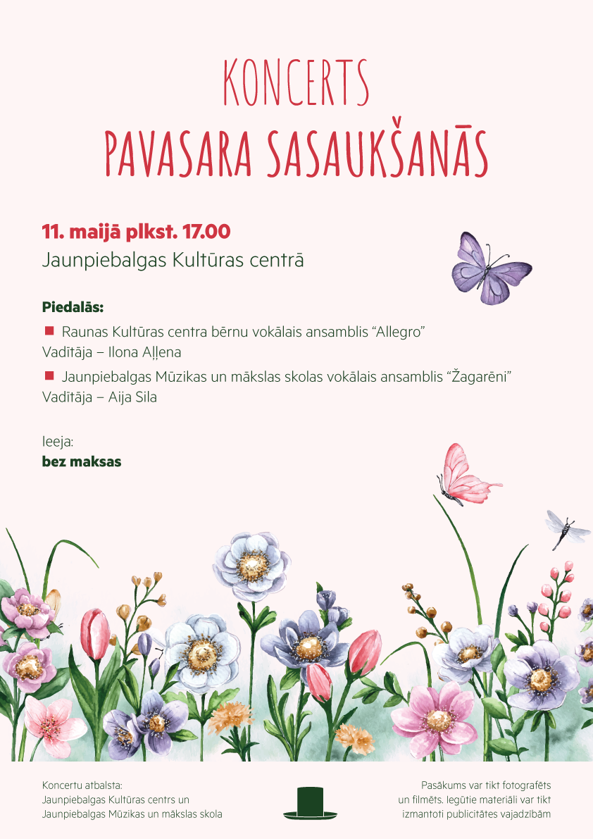 Pirmdien, 11. maijā, plkst. 17.00 Jaunpiebalgas Kultūras centrā izskanēs koncerts “Pavasara sasaukšanās”.