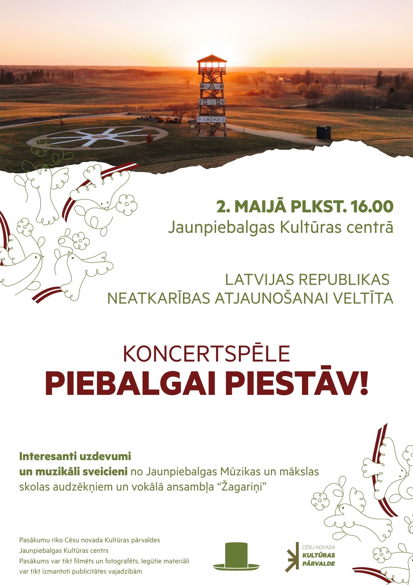 Sestdien, 2. maijā, plkst. 16.00 Jaunpiebalgas Kultūras centrā notiks Latvijas Republikas neatkarības atjaunošanai veltīta koncertspēle “Piebalgai piestāv!”.