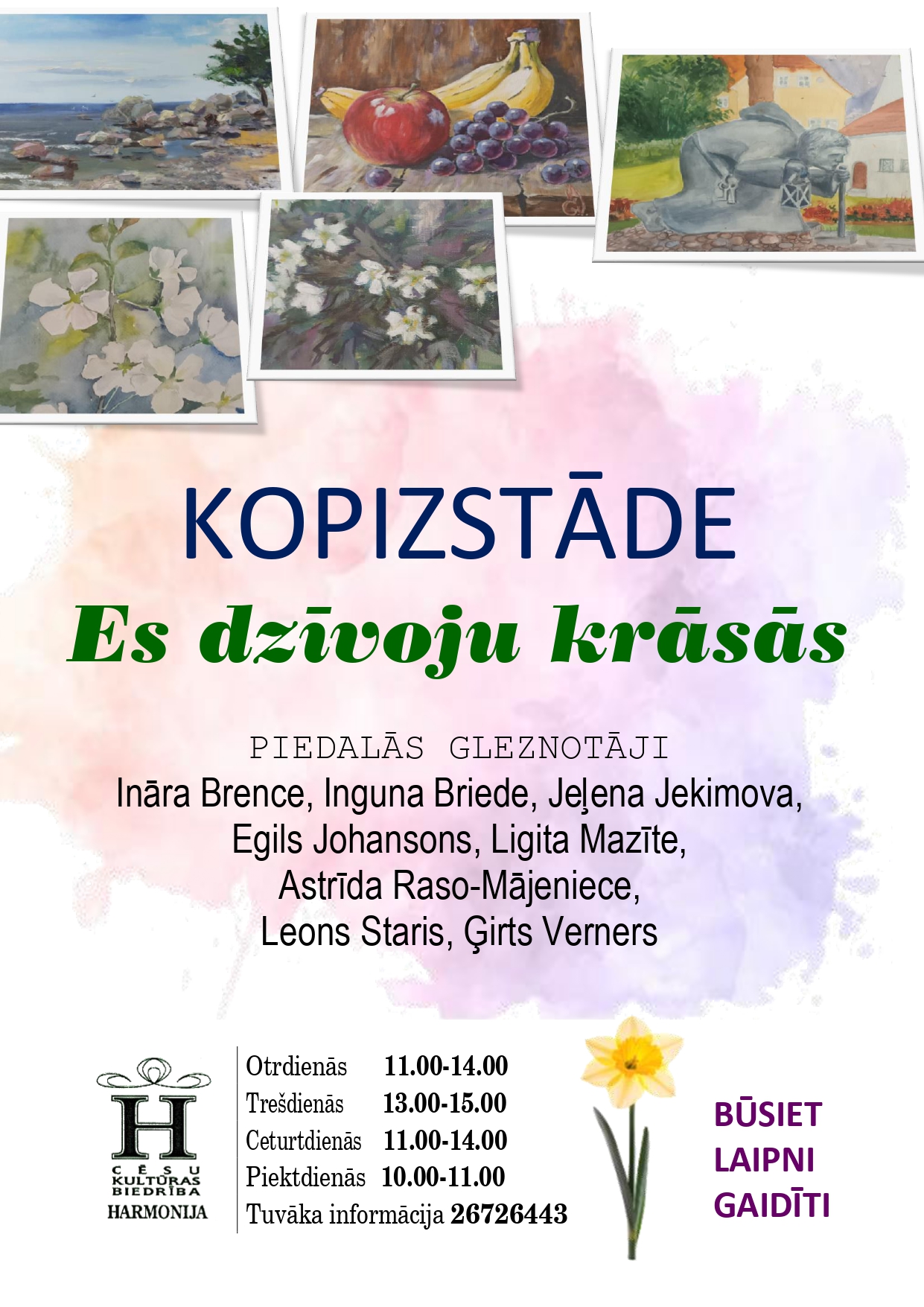 Kultūras biedrībā “Harmonija” apskatāma kopizstāde “Es dzīvoju krāsās”.