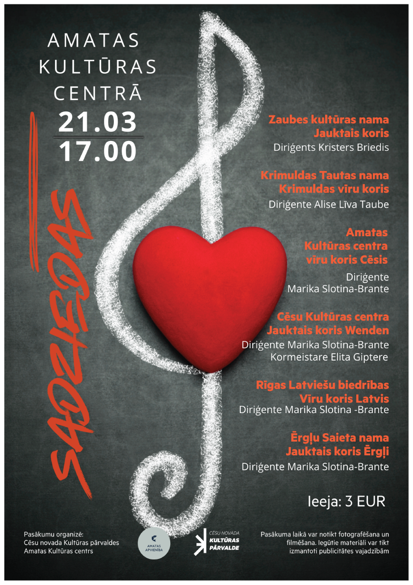 Sestdien, 21. martā, plkst. 17.00 Amatas Kultūras centrā notiks koru sadziedāšanās pasākums.