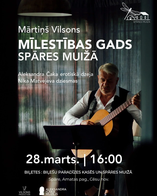 28. martā plkst. 16.00 Spāres muižā atdzīvosies Aleksandra Čaka erotiski jutekliskā dzeja Mārtiņa Vilsona muzikālajā dzejas izrādē “Mīlestības gads”.
