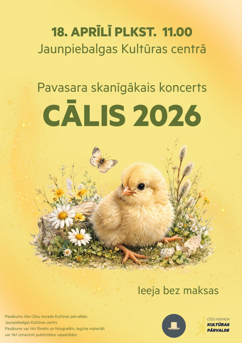 Sestdien, 18. aprīlī, plkst. 11.00 Jaunpiebalgas Kultūras centrā notiks mazo vokālistu koncerts “Cālis 2026”.
