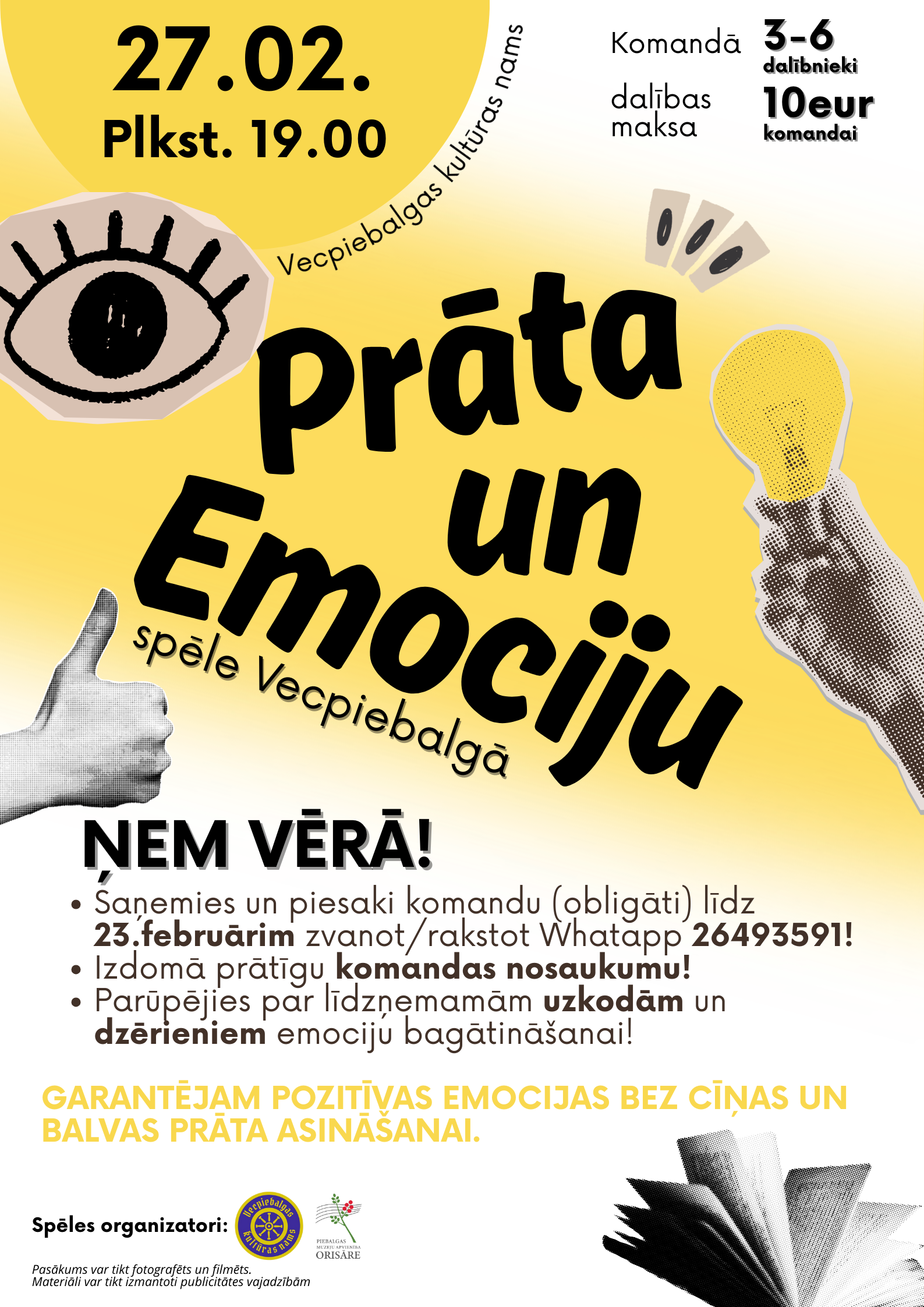 Aicinām veidot komandu 3–6 cilvēku sastāvā un pieteikt dalību līdz 23. februārim, zvanot vai rakstot WhatsApp 26493591.