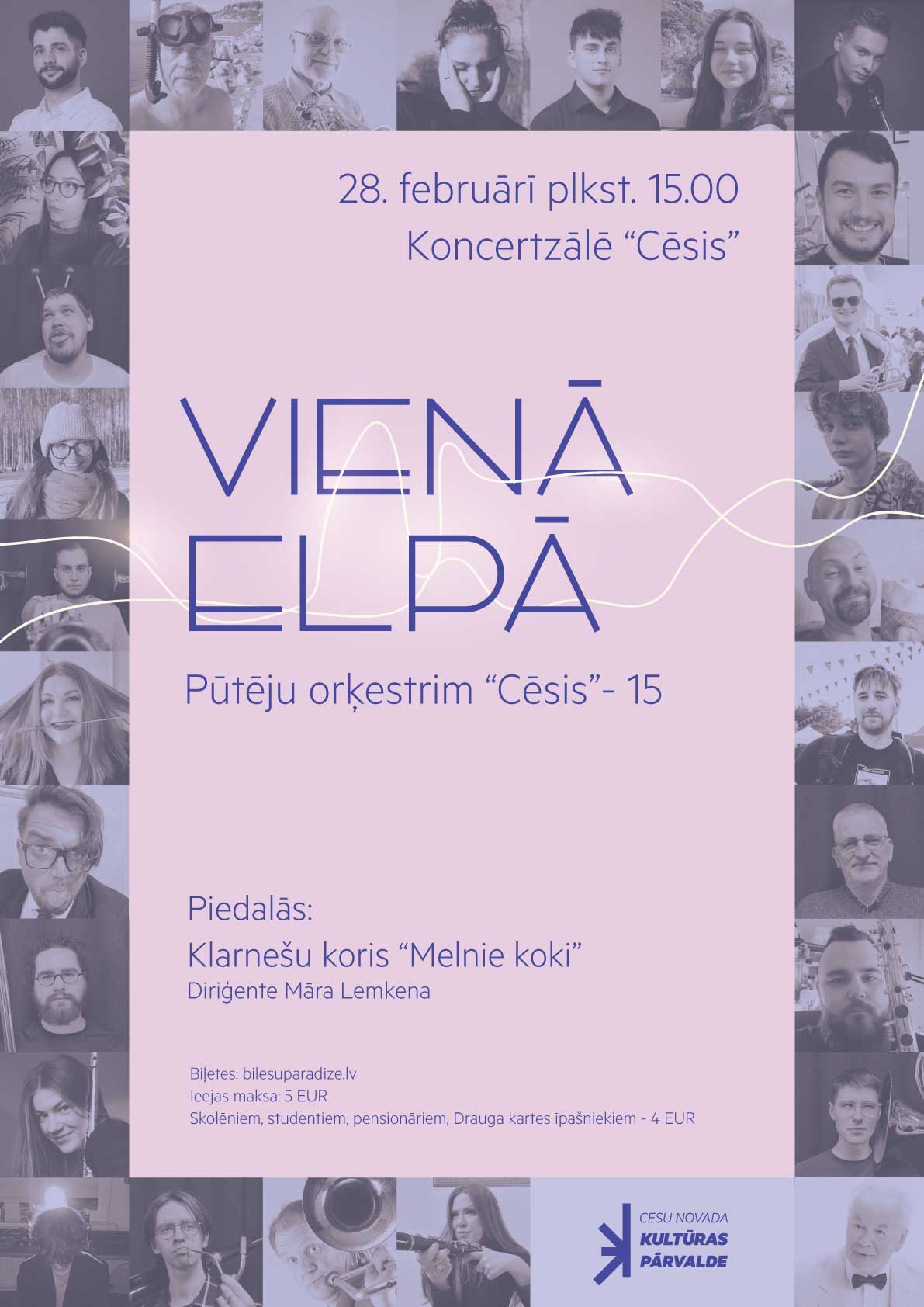 Sestdien, 28. februārī, plkst. 15.00 Vidzemes koncertzālē “Cēsis” ikviens mūzikas draugs sirsnīgi aicināts uz īpašu svinību koncertu “Vienā elpā”, atzīmējot pūtēju orķestra “Cēsis” 15 gadu jubileju.