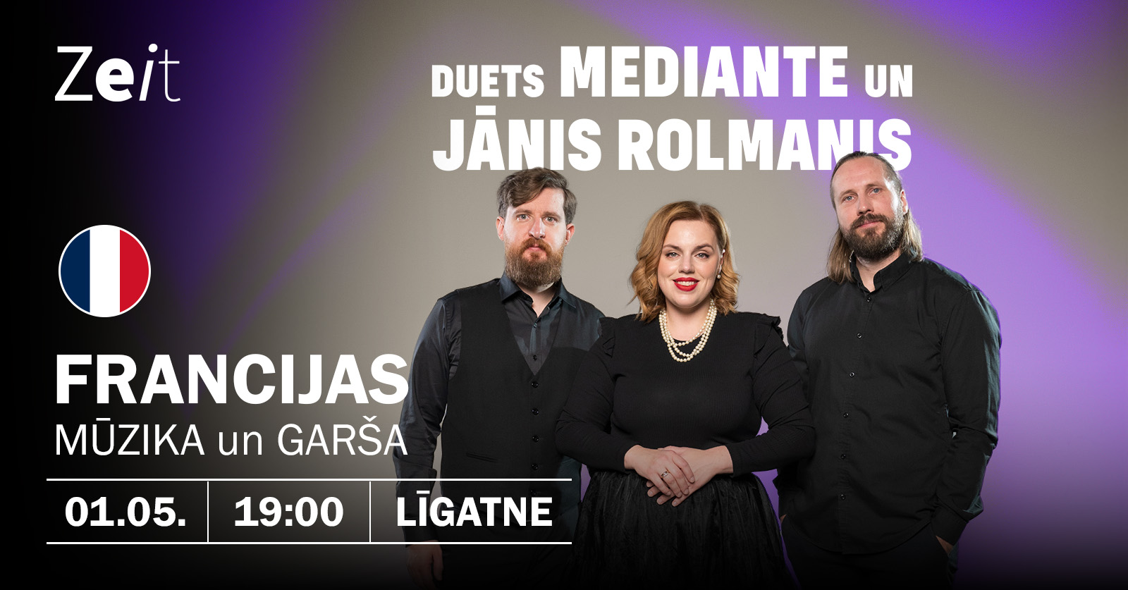 1. maijā plkst. 19.00 radošais kvartāls “Zeit” Līgatnē ielūdz uz iemīļoto Francijas mūzikas un garšas vakarukopā ar duetu MEDIANTE un JĀNI ROLMANI.