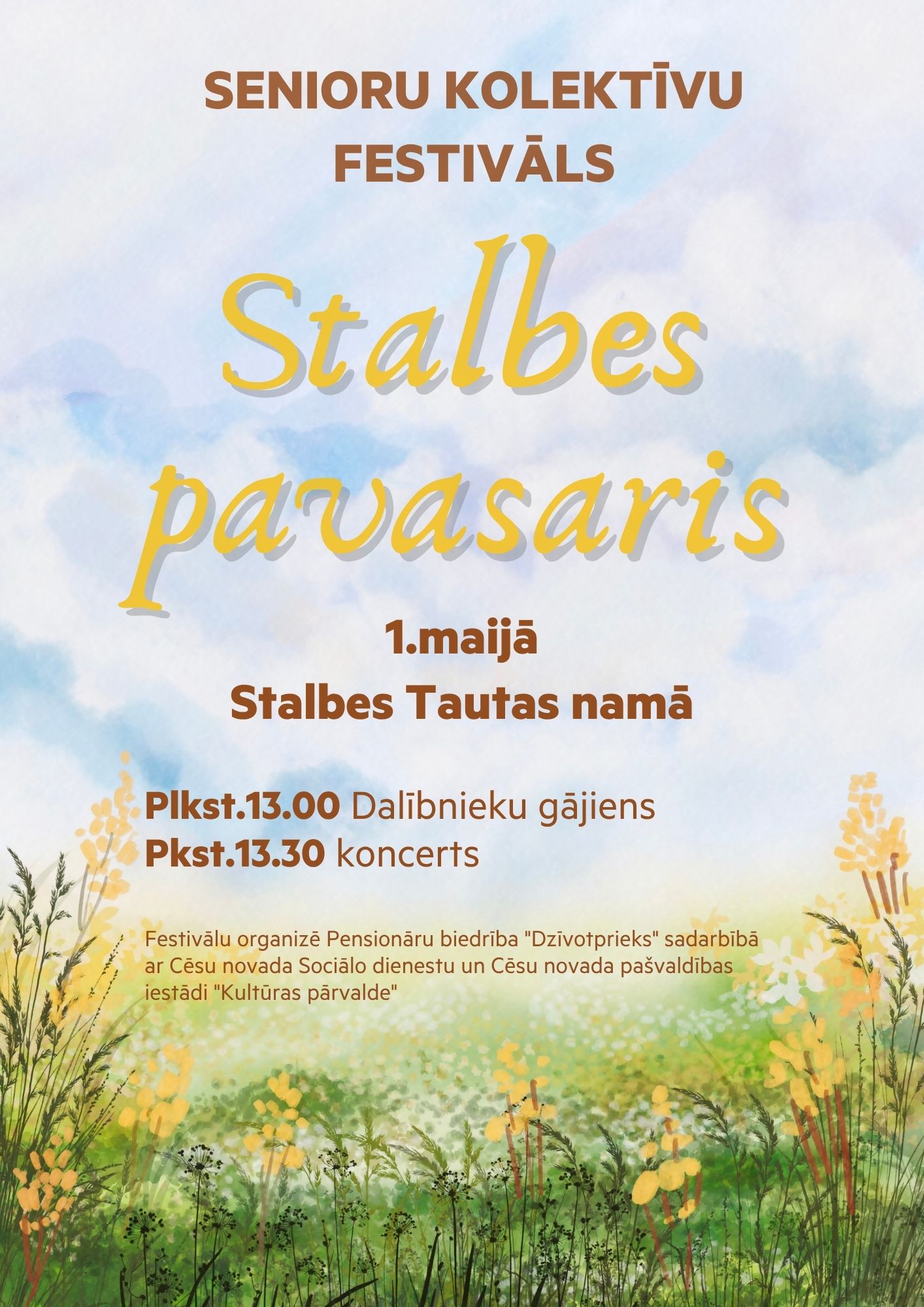 Piektdien, 1. maijā, Stalbes Tautas namā ikviens aicināts uz senioru kolektīvu festivālu “Stalbes pavasaris”!