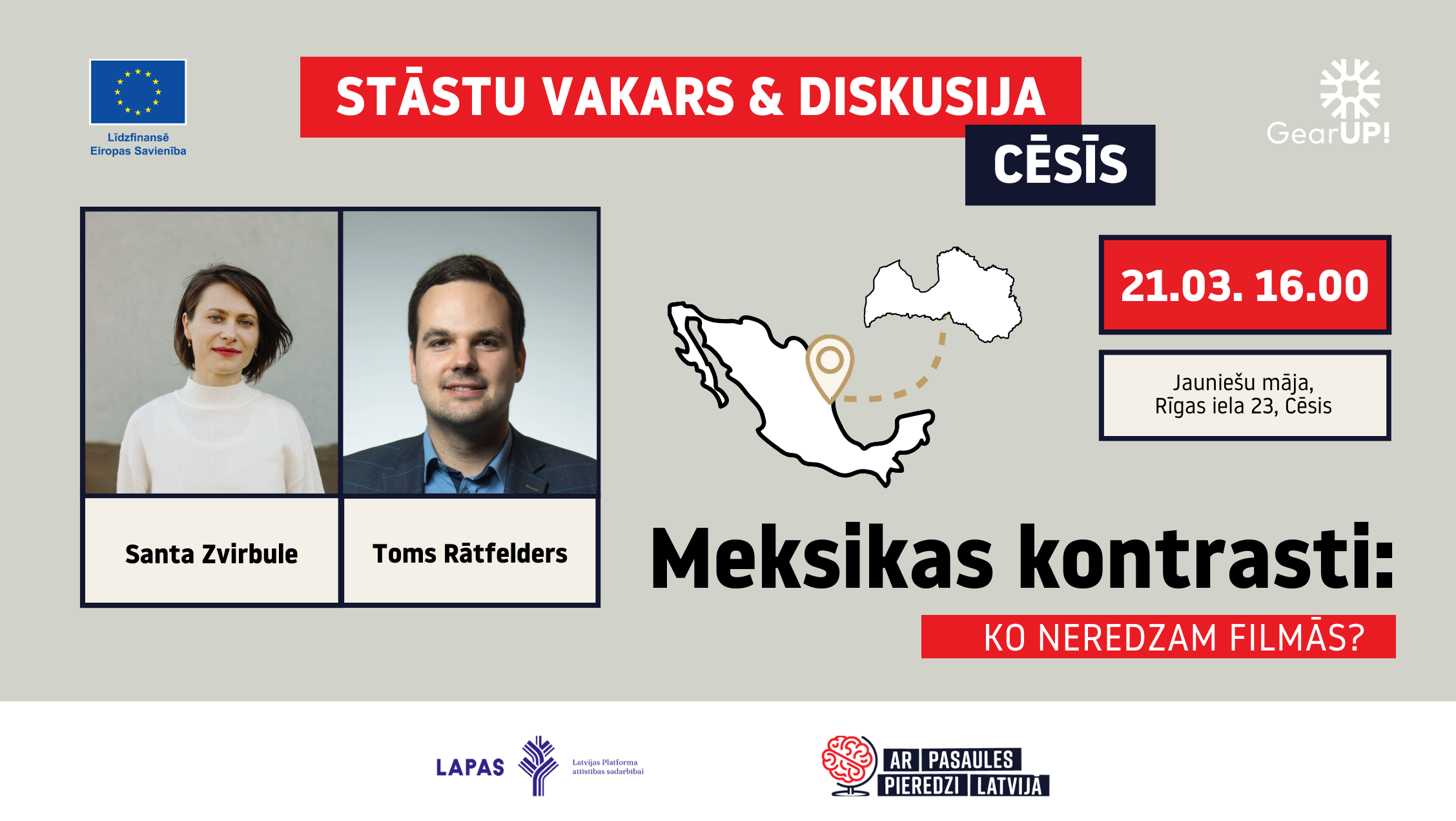 Sestdien, 21. martā, plkst. 16.00 Cēsu Jauniešu mājā (Rīgas ielā 23, Cēsīs) notiks stāstu vakars un diskusija – Meksikas kontrasti.