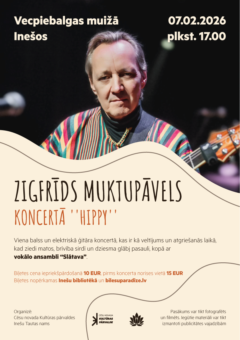 Sestdien, 7. februārī, plkst. 17.00 Vecpiebalgas muižā (Inešos) notiks Zigfrīda Muktupāvela koncerts “HIPPY”.